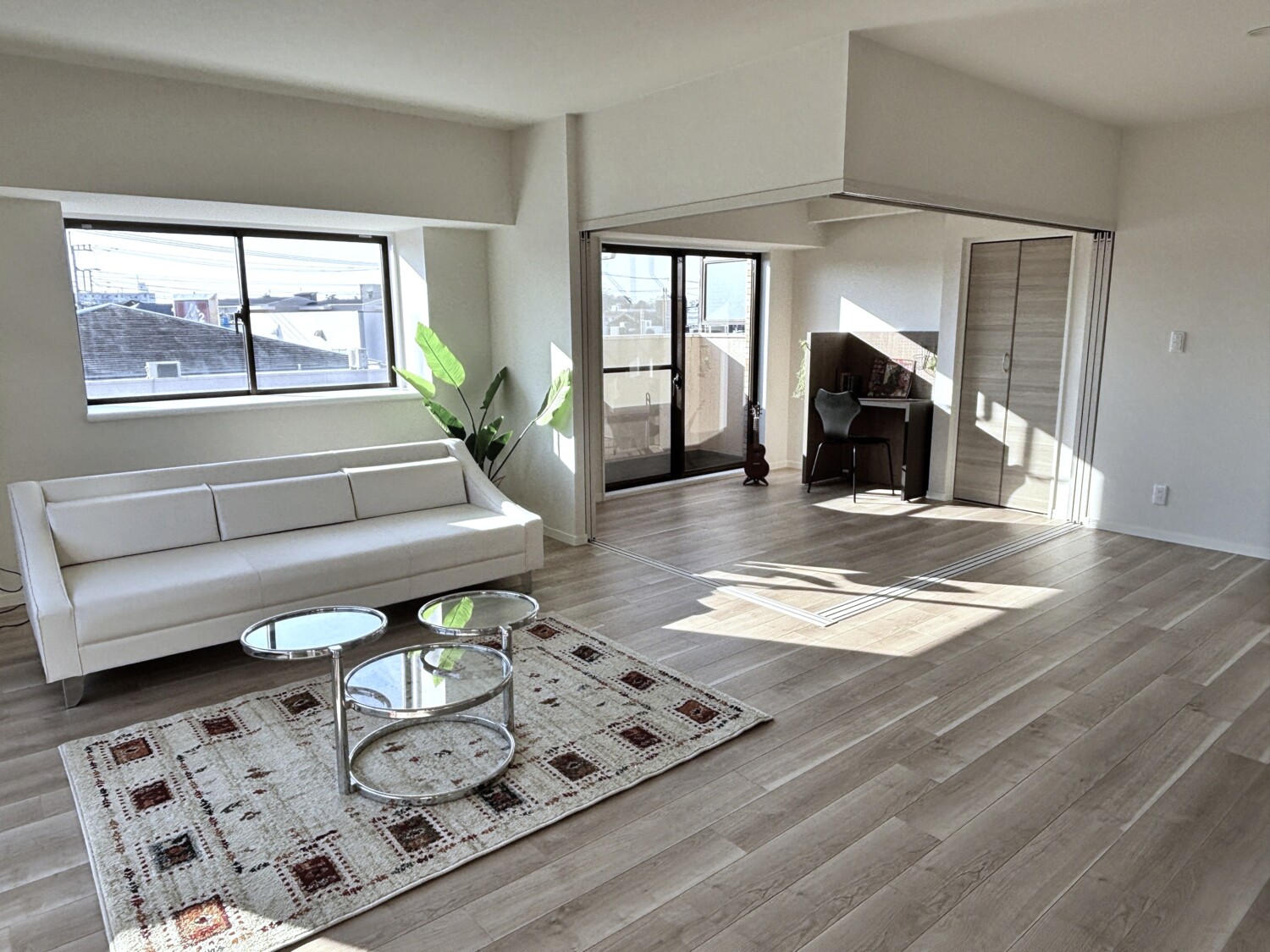 床材をLDKと統一することで、空間に一体感が生まれ、より広がりのあるリビング空間になりました。