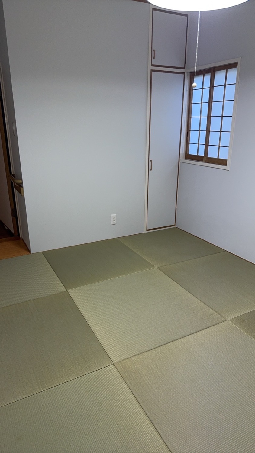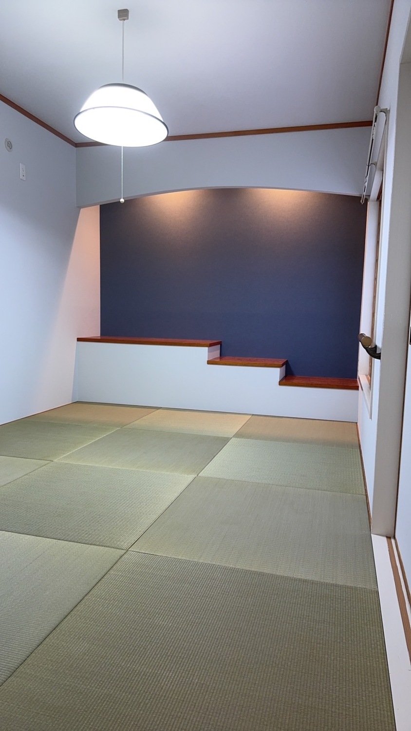 従来の和室を、落ち着いたトーンの壁色と琉球畳風のフロアで仕上げ、上質な和モダン空間へとリフォームしました。